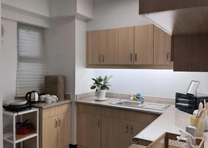 プールの景色を見渡す広々としたAlea Residences 1 Bedroom Condo With Pool View Balcony マニラ市は、セント・ジョゼフ・パリッシュから徒歩で25分です。 ビジネスとレジャーの両方でWiFiを利用することができます。